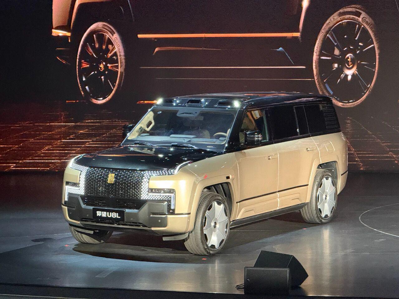 发布会上,仰望U8L缓缓驶入舞台中央,金色光束照在车身上,整辆车金灿灿的,观众席中传来赞叹:“实物比照片帅太多”。